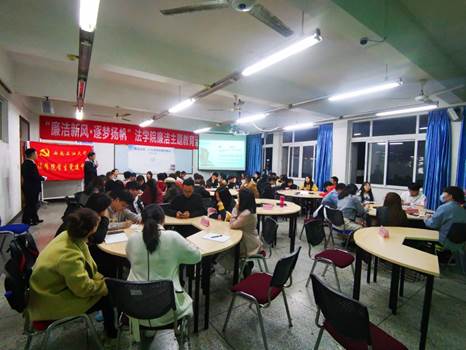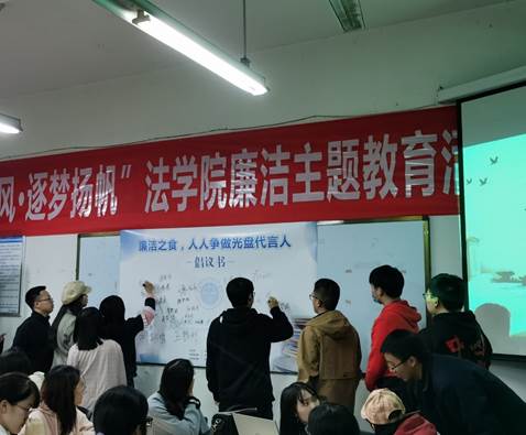 首先,于老師做了動(dòng)員講話,他說:繼去年學(xué)院開展了“不忘初心,倡廉治學(xué)”主題教育活動(dòng)后,今年學(xué)院開展“廉潔新風(fēng)·逐夢揚(yáng)帆”主題教育活動(dòng),意義非凡,大學(xué)生作為未來國家建設(shè)發(fā)展的主力軍,尤其是作為法學(xué)院學(xué)子應(yīng)當(dāng)始終保持廉潔清正的風(fēng)貌,自覺提升自己的思政內(nèi)涵,堅(jiān)守在思想防線的前沿。他對廣大學(xué)子提出三點(diǎn)希望和要求:一是加強(qiáng)學(xué)習(xí),做正確三觀之人;二是修心修德,做身清氣正之人;三是慎言慎行,做遵規(guī)守矩之人。他告誡大家要常懷敬畏之心,常行律己之為。