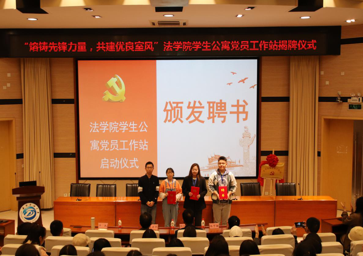 為了進一步貫徹習近平新時代中國特色社會主義思想和黨的十九大精神,落實全國高校思政會議部署,不斷加強我校基層黨建工作力量,不斷推動黨員管理和學生公寓黨建服務規范化,精細化,信息化。根據校黨委有關工作要求,借鑒其他高校黨建中心、黨員工作站的建設經驗,結合我院實際,法學院黨委決定,正式掛牌“法學院學生公寓黨員工作站”并在11月5日晚19點在思學樓A114舉行揭牌儀式。