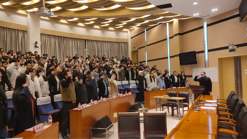 本次活動以學習宣傳憲法為活動核心,共有憲法宣誓、院長致辭、模擬法庭表演賽、合議庭點評以及法學院辯論隊授徽儀式五個環節。在由田維老師領誓的宣誓環節中,全體師生聲音洪亮、語氣篤定,堅定的目光彰顯著捍衛憲法莊嚴的勇氣,洪亮的宣誓聲飽含著獻身法治建設的決心。在院長致辭環節中,法學院副院長傅晶晶老師強調崇尚憲法、遵紀守法是每個公民應盡的社會責任,并希望每一位法學學子都讓憲法精神植根心底,并將其化為尊法守法的行動自覺。