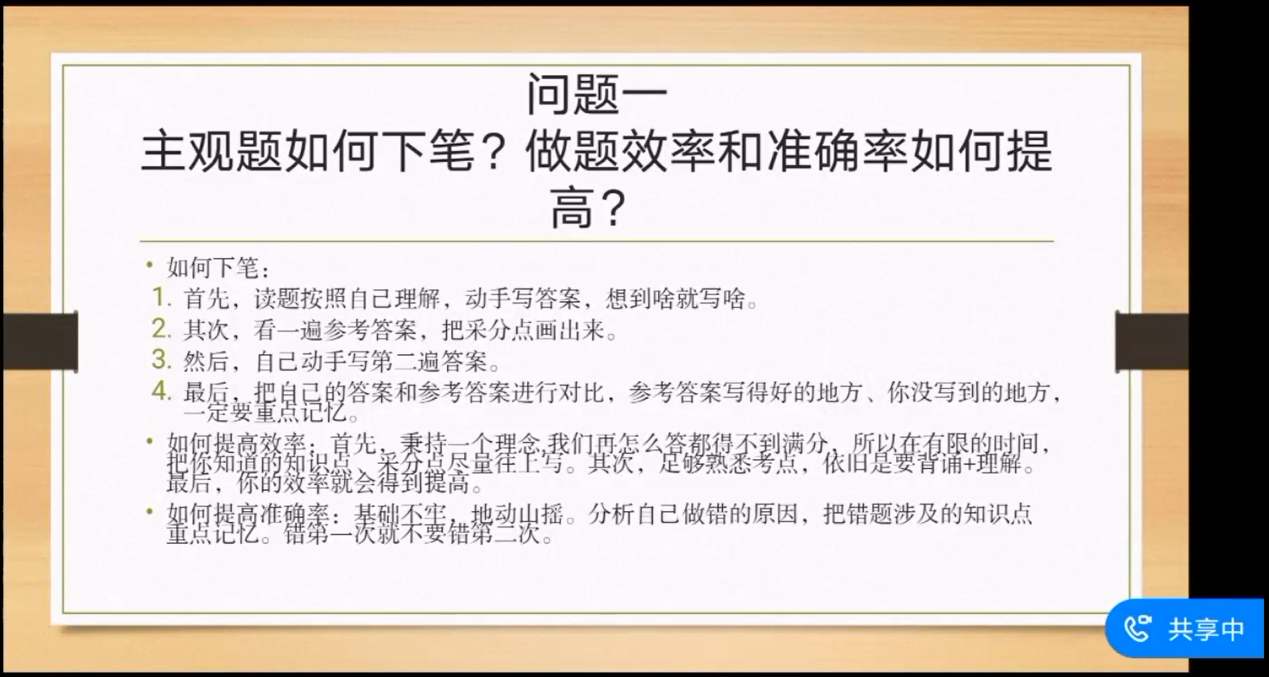 法學專業(yè)的程海燕同學提醒各位考生,在本階段,需要每天做英語真題卷來保持做題感覺,并整理自己的作文模板以及專業(yè)課主觀題的做題方法。羅維宇同學分享了做政治分析題的經(jīng)驗——通過整理不同老師關于同一話題的論述,形成自己的模板,制定沖刺階段的具體時間安排。謝明宏同學強調了專業(yè)課真題中客觀題的價值,重者恒重,對于政治分析題,要重視各類押題卷中的重合部分。