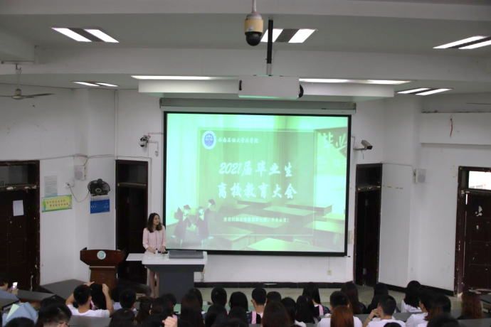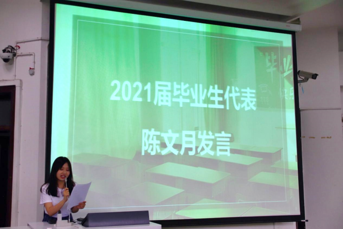 會上,黨委副書記于百江老師表示:“時間見證了我們的成長,成就別人就是成長自己。”在本次教育大會上,主要給2021屆畢業生作提醒和忠告,提醒同學們檔案的重要性以及認真落實檔案的相關事宜。同時就安全提出忠告,告誡畢業生們在聚餐高峰期以及今后都要重視食品安全。于書記也在講話最后為畢業生送上祝福和期望,祝愿大家健康平安,在今后的學習、工作生涯中一展所長,實現自己的抱負。隨后,2017級法學專業畢業生代表陳文月同學,主要圍繞“做人做事”、“能力提升”、“未來規劃”三個方面進行思考,表達自己在大學四年的感觸和感恩,引發了同學們巨大的共鳴。