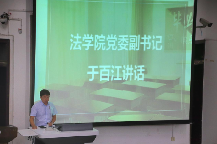為進一步加強畢業生教育工作,倡導畢業生文明離校的風尚,打造“情系母校、感恩母校、文明離校”的畢業生離校文化,法學院于6月8日上午在思學樓C210開展了2021屆畢業生離校教育大會。我院黨委副書記于百江出席本次會議,全體2021屆畢業生參與本次會議。會議由2017級輔導員鄧超越老師主持。