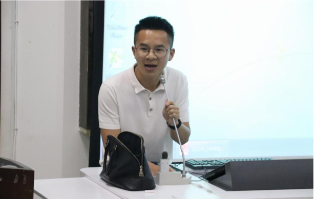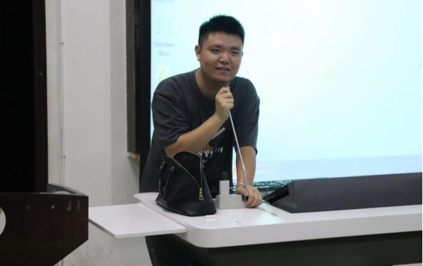 隨后,董家豪老師分享了他擔(dān)任20級(jí)兼職班主任以來(lái)的心路歷程,他表示他曾在工作中因?yàn)閷W(xué)長(zhǎng)和老師的雙重身份而感到困擾,一度讓他陷入焦慮和不安中。但他也在不斷付出真心的這段日子里收獲了20級(jí)小伙伴們的真心和真情,這段亦師亦友的經(jīng)歷讓他非常難忘和感動(dòng)。他說(shuō)卸任后他不再是董老師,而是同學(xué)們的家豪學(xué)長(zhǎng),他會(huì)換一個(gè)身份繼續(xù)陪伴大家成長(zhǎng)。最后,他也提到希望同學(xué)們與老師能相互體諒,積極溝通,共同創(chuàng)造青春美好的記憶。