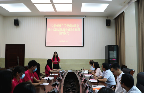 “守護蝶夢”關愛殘障兒童社會實踐團為期一周的實踐活動圓滿落幕,志愿者唐雯雯代表團隊進行“守護蝶夢”關愛殘障兒童社會實踐成果匯報,曾琪珈代表團隊分享實踐感想。巴蜀社會工作服務中心主任趙玉太、學院團委書記鄧超越、巴中市殘疾人康復中心負責人尤波分別進行了講話。