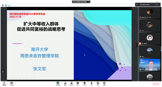 張文宏教授做了主題為“擴(kuò)大中等收入群體促進(jìn)共同富裕的戰(zhàn)略思考”的報(bào)告。他考察了共同富裕目標(biāo)提出的歷史背景和社會(huì)意義,比較了中等收入群體的不同操作化測(cè)量?jī)?nèi)涵,尤其圍繞“制定有差別的中等收入群體標(biāo)準(zhǔn)”“發(fā)揮共同富裕示范區(qū)的引領(lǐng)作用”“繼續(xù)加快城市化進(jìn)程”等七個(gè)方面,構(gòu)建了我國(guó)擴(kuò)大中等收入群體的制度設(shè)計(jì)。