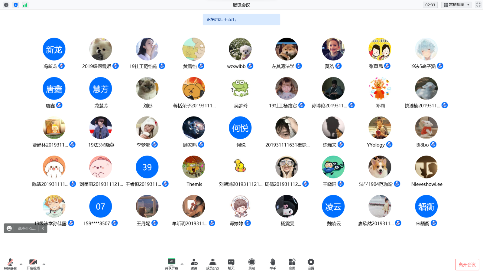 12月15日下午15:00,法學院于線上騰訊會議召開法學院2023屆考研學生誠信教育大會暨考前注意事項溫馨提示。法學院黨委副書記、紀委書記于百江主講,會議由2019級輔導員楊可瀚主持,全體考研同學準時參加。