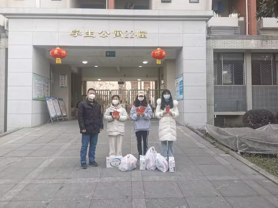 張華春關切地詢問了學生在寒假期間的學習和生活情況,悉心了解學生在校的衣食住行各方面情況,叮囑留校學生與家人親友加強聯系和溝通,寒假期間如遇任何問題和困難,可以向學校和學院老師反映。張華春鼓勵留校學生珍惜在校學習的時光,勞逸結合,度過一個愉快而充實的寒假。同時,他也為留校學生送上了學校以及學院新春慰問大禮包,包含學校的慰問紅包、團年餐券,學院禮包包含慰問紅包、一箱牛奶、旺旺大禮包、巧克力等慰問品,希望留校學生們在新的一年所求皆如愿,所行皆坦途,學業有成,萬事可期,祝愿同學們新春快樂!