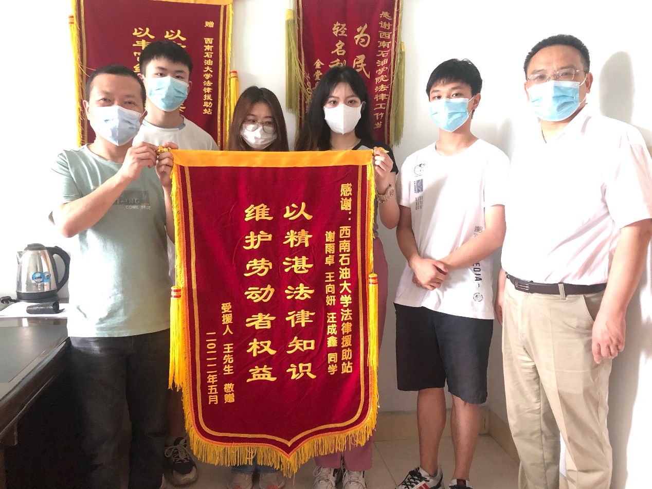 王某與某公司勞動(dòng)爭議一案,新都區(qū)勞動(dòng)爭議仲裁委員會(huì)裁決某公司向王某支付經(jīng)濟(jì)補(bǔ)償金10661元,該公司不服向湖南省長沙縣法院起訴,長沙縣法院正式立案并通知王某應(yīng)訴。2022年3月,王某來到援助站咨詢,王向妍、謝雨卓、王成鑫3位同學(xué)負(fù)責(zé)接待。在援助站尹老師的指導(dǎo)下,從實(shí)體與程序兩個(gè)方面為王某代書了答辯狀。王某擔(dān)心法院距離遠(yuǎn)、應(yīng)訴花銷大,援助站給出如果法院通知開庭,可申請法院線上開庭的建議,同時(shí)告知王某法院收到答辯狀可能不開庭就會(huì)駁回對方起訴,盡力為王某解除擔(dān)憂。隨后,王某將此答辯狀寄往湖南省長沙縣人民法院,并于5月6日收到法援裁定書。法院充分采納了答辯意見,裁定駁回王某公司的起訴。5月8日,王某便收到了對方公司支付的經(jīng)濟(jì)補(bǔ)償金10661元。5月22日,王某對法律援助站所提供的援助表示由衷的感謝,為援助站送上了印有“以精湛法律知識(shí),維護(hù)勞動(dòng)者權(quán)益”字樣的錦旗。