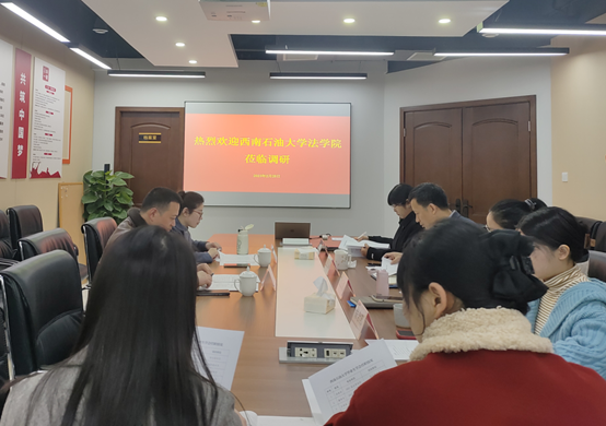 2月28日上午,西南石油大學法學院黨委書記張華春、院長傅晶晶赴成都市環境科學學會走訪調研。成都市環境科學學會副理事長兼秘書長李煒、副秘書長金玉娟、副秘書長蔣靜、相關部門負責人及在學會任職的我院畢業生代表參加了座談。