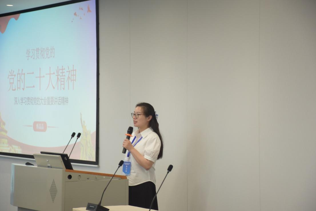 圖3:四川省法學會能源法學研究會常務副會長、西南石油大學法學院院長、西南石油大學法治與社會治理研究院院長傅晶晶教授宣講黨的二十大精神