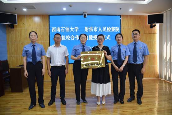 為了提升法學教學質量,實現為地方法治服務,進一步促進法學教學和司法的相符融合,推動法學教育與檢察業務資源共享、良性互動、共建共贏。9月13日上午,西南石油大學法學院與射洪市人民檢察院舉辦“檢校共建”啟動儀式。西南石油大學法學院院長傅晶晶,法學院法學教研室主任吳曉敏、法學院實習訓練中心主任宋旭平一行與遂寧市人民檢察院黨組成員、機關黨委書記陸敏,射洪市人民檢察院黨組書記、檢察長王成虹 ,射洪市委政法委常務副書記趙鵬杰等參加上述活動。