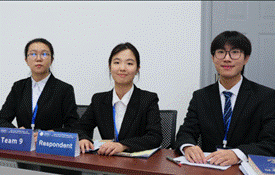 經歷書狀環節的殘酷淘汰,2023年9月25日,我校代表隊從近40所國內外知名院校中脫穎而出,成功晉級復賽(口賽環節),與北京外國語大學、中國海洋大學、中國政法大學、西南政法大學等國內外知名院校同場較量。我校隊員在強大的對手面前,從細節入手,有理有據地表達己方觀點,針對案件爭議焦點深入分析并展開庭辯,展現出了扎實的法學專業功底和流利的英語表達能力,得到了現場評審專家與對手隊員的一致認可。