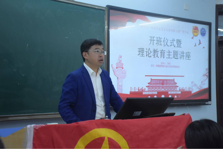 為培養(yǎng)具有忠誠(chéng)的政治品格、濃厚的家國(guó)情懷、扎實(shí)的理論功底、突出的能力素質(zhì),忠恕任事、人品服眾的青年政治骨干,2023年11月9日晚上19:00,法學(xué)院“青年馬克思主義者培養(yǎng)工程”——“青馬骨干班”在思學(xué)樓C307正式開班并進(jìn)行第一次理論教育主題講座。此次活動(dòng)邀請(qǐng)到了學(xué)校黨建辦公室主任、黨委組織部副部長(zhǎng)張鳳作為主講人,本次會(huì)議由院黨委副書記、紀(jì)委書記于百江主持,輔導(dǎo)員蹇屹山和“青馬骨干班”學(xué)員參會(huì)。