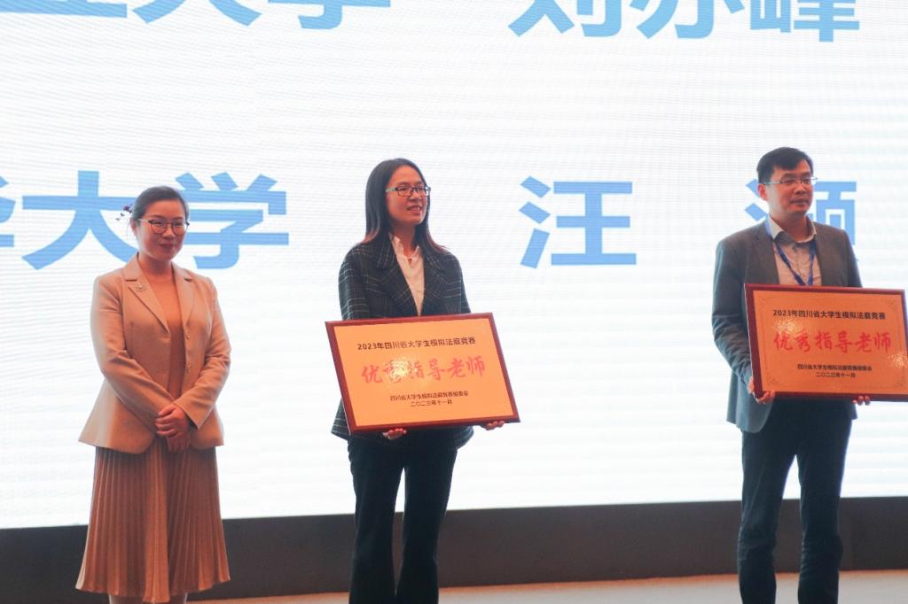 本次模擬法庭大賽歷時兩天,經過全省22所高校多場激烈庭審對抗,最終由四川農業大學和西華大學獲得一等獎。領導嘉賓為各位獲獎隊伍、選手及優秀指導老師頒了獎。