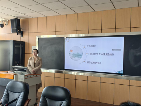本次會(huì)議由學(xué)院院長(zhǎng)傅晶晶教授進(jìn)行經(jīng)驗(yàn)分享,傅晶晶院長(zhǎng)曾獲第八屆西浦全國(guó)大學(xué)教學(xué)創(chuàng)新大賽全國(guó)二等獎(jiǎng);第三屆四川省普通本科高校教師教學(xué)創(chuàng)新大賽正高組二等獎(jiǎng)。會(huì)上,傅晶晶院長(zhǎng)首先從“創(chuàng)新是什么?”、“如何開(kāi)展創(chuàng)新?”、“創(chuàng)什么樣的新?”三個(gè)方面分享了自己對(duì)教學(xué)創(chuàng)新大賽的認(rèn)識(shí)和解讀,備賽中需注意的要點(diǎn)、痛點(diǎn)及需避的“坑”等備賽經(jīng)驗(yàn)。其次,傅晶晶院長(zhǎng)以自己參賽創(chuàng)新課程為例,向我們分享了課程的創(chuàng)新由來(lái)、創(chuàng)新理念、學(xué)情分析、創(chuàng)新舉措及創(chuàng)新成效等。會(huì)后,傅晶晶院長(zhǎng)與老師們就創(chuàng)新大賽比賽環(huán)節(jié)、創(chuàng)新報(bào)告撰寫(xiě)等相關(guān)事項(xiàng)進(jìn)行了充分的交流。