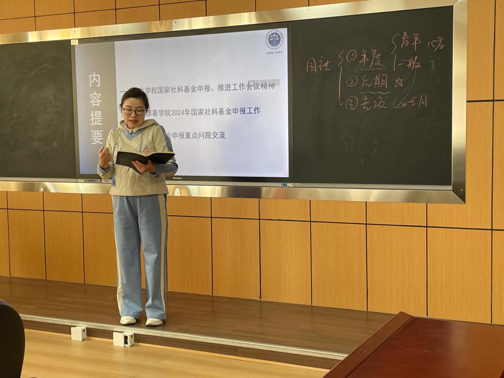 譚祖雪院長從科研和研究生培養的角度對2024年國家社科基金申報工作進行了說明。她指出,可持續性地開展科研,依托高級別課題研究方向指導研究生是高校教育的重要內容,各位老師務必高度重視。