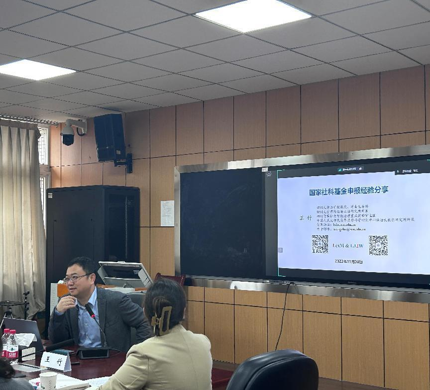 為深入做好2024年國(guó)家社科基金項(xiàng)目組織申報(bào)工作,提升申報(bào)書(shū)撰寫(xiě)質(zhì)量,加強(qiáng)教師間的溝通交流,提高國(guó)家社科基金項(xiàng)目申報(bào)成功率,11月30日下午,學(xué)院舉辦了國(guó)家社科基金項(xiàng)目申報(bào)指導(dǎo)專題講座,特邀四川大學(xué)法學(xué)院王竹教授作為主講人向全院教師作報(bào)告。本次專題講座由法學(xué)院院長(zhǎng)傅晶晶教授主持。
