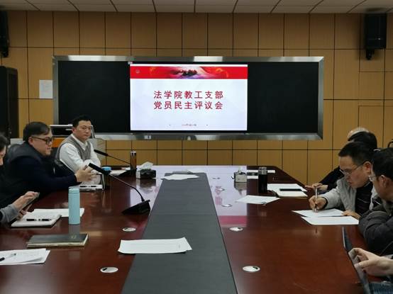 根據學院黨委《關于開展2023年度基層黨組織組織生活會和民主評議的通知》要求,法學院教工黨支部于2024年1月19日在博學樓A408召開了2023年度法學院教工黨支部召開2023年專題組織生活會暨民主評議黨員大會。