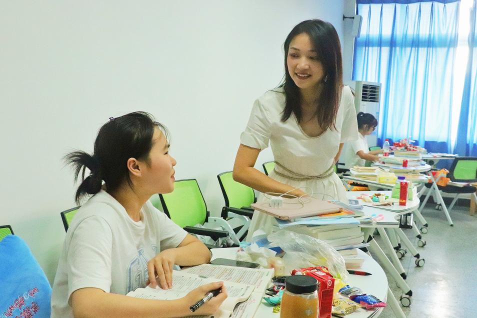 為關心法學院2025屆暑期留校考研學子,幫助考他們緩解備考壓力,鼓舞士氣,8月15日下午,法學院團委書記、2021級輔導員鄧超越前往學院考研自習室(博學樓a506)慰問留校復習的考研學子。