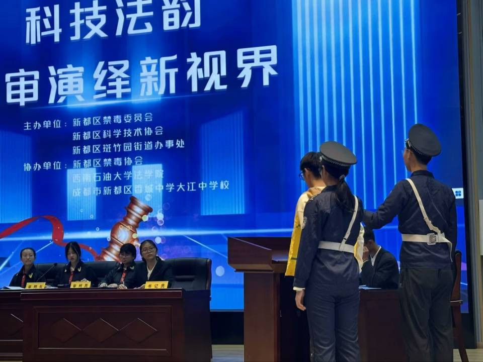 10月12日,由新都區(qū)禁毒委員會(huì)、科學(xué)技術(shù)委員會(huì)、斑竹園街道辦事處等單位共同舉辦的“科技法韻,庭審演繹新視界”主題活動(dòng)在香城大江中學(xué)開展,法學(xué)院“法治紅星”宣講團(tuán)的同學(xué)們用一場(chǎng)生動(dòng)的禁毒模擬法庭展演,引導(dǎo)大江中學(xué)的青年學(xué)生遠(yuǎn)離毒品,珍愛生命。