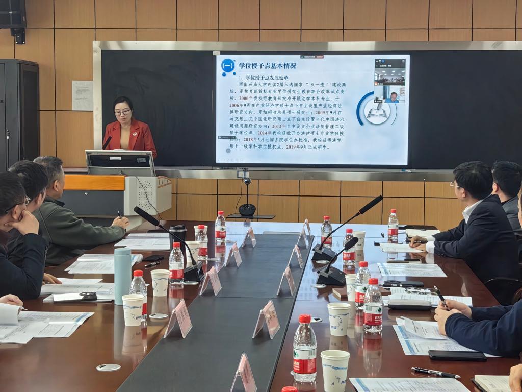 省紀委監委駐校紀檢監察組組長,西南石油大學黨委副書記、紀委書記張明首先代表學校對合格評估專家組的到來表示熱烈歡迎,并對西南石油大學及法學院的學科專業進行了總體介紹,希望與會專家為法學院學科建設、研究生教育和人才培養等方面“把脈問診”,提出寶貴意見,持續關注、支持、指導學位點的建設,促進學科高質量發展。