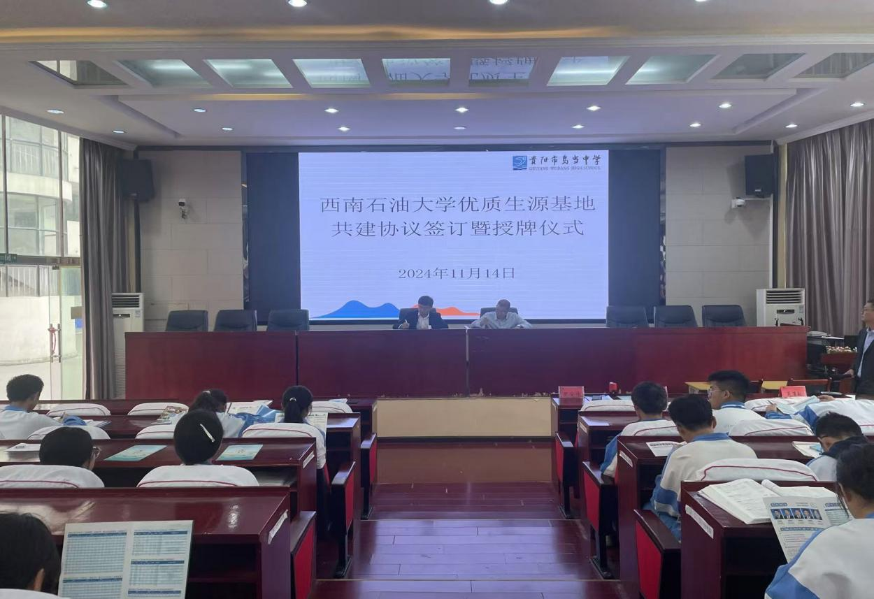 此次優質生源基地建設工作中,我校選擇了赴貴陽市第一中學等10所學校進行簽約、授牌、宣講活動,得到了各中學的熱烈歡迎與感謝。在各中學舉行的座談會上,雙方就此次建設優秀生源基地的意義、工作思路和合作內容進行了交流。于百江介紹了西南石油大學的辦學歷史、專業特色以及學校在人才培養、學科建設、教學研究、招生就業等方面取得的成就。他表示,學校將持續通過多種方式加強與優秀生源基地中學的合作,開展學術報告、科普講座、高考咨詢等。各優質生源基地中學介紹了各自學校的辦學成績和辦學特色。隨后雙方舉行了優質生源基地授牌儀式,并簽署了建設協議。在部分中學,于百江進行了以“學黨史,汲取進步力量;致青春,不負最美芳華”為主題的勵志宣講。他首先為同學們梳理了中國共產黨黨史,再從大學生活出發,講述了大學生活的豐富多彩,最后勉勵同學們努力學習,不負青春。現場同學也反響積極,有同學表示:“此次勵志宣講讓他了解了黨的百年奮斗歷程,也讓他更向往大學的校園生活,更鼓舞了他砥礪奮進、努力前行的決心?!?/span>