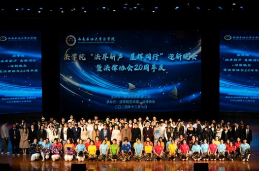 12月7日晚7點,西南石油大學法學院“法界新聲,星輝同行”迎新晚會在在雙創大樓學術報告廳隆重舉行。校團委副書記蒲彥羽,法學院黨委書記張華春,院長傅晶晶,院黨委副書記、紀委書記于百江,副院長周炎炎,院團委書記鄧超越和全體專兼職輔導員等出席晚會現場,法學院校友代表、四川大學等其他高校代表、各學院團學骨干代表、法學院部分師生參與了本次晚會。