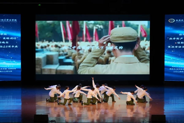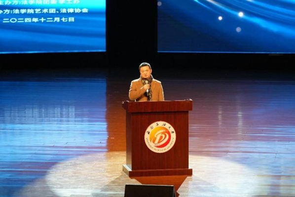 晚會在法學院黨委書記張華春的致辭中拉開序幕。燈光璀璨,音樂悠揚,伴隨著樂隊表演開場,法學院師生用他們的熱情表演,呈現了三個篇章共計十二個特色節目。從激情四溢的現代舞蹈到深情并茂的朗誦表演,從精彩絕倫的魔術表演展示到幽默風趣的小品演出,每一個節目都充分展現了法學院師生的才華與魅力,贏得了觀眾們的陣陣掌聲與喝彩。