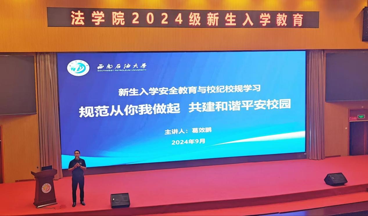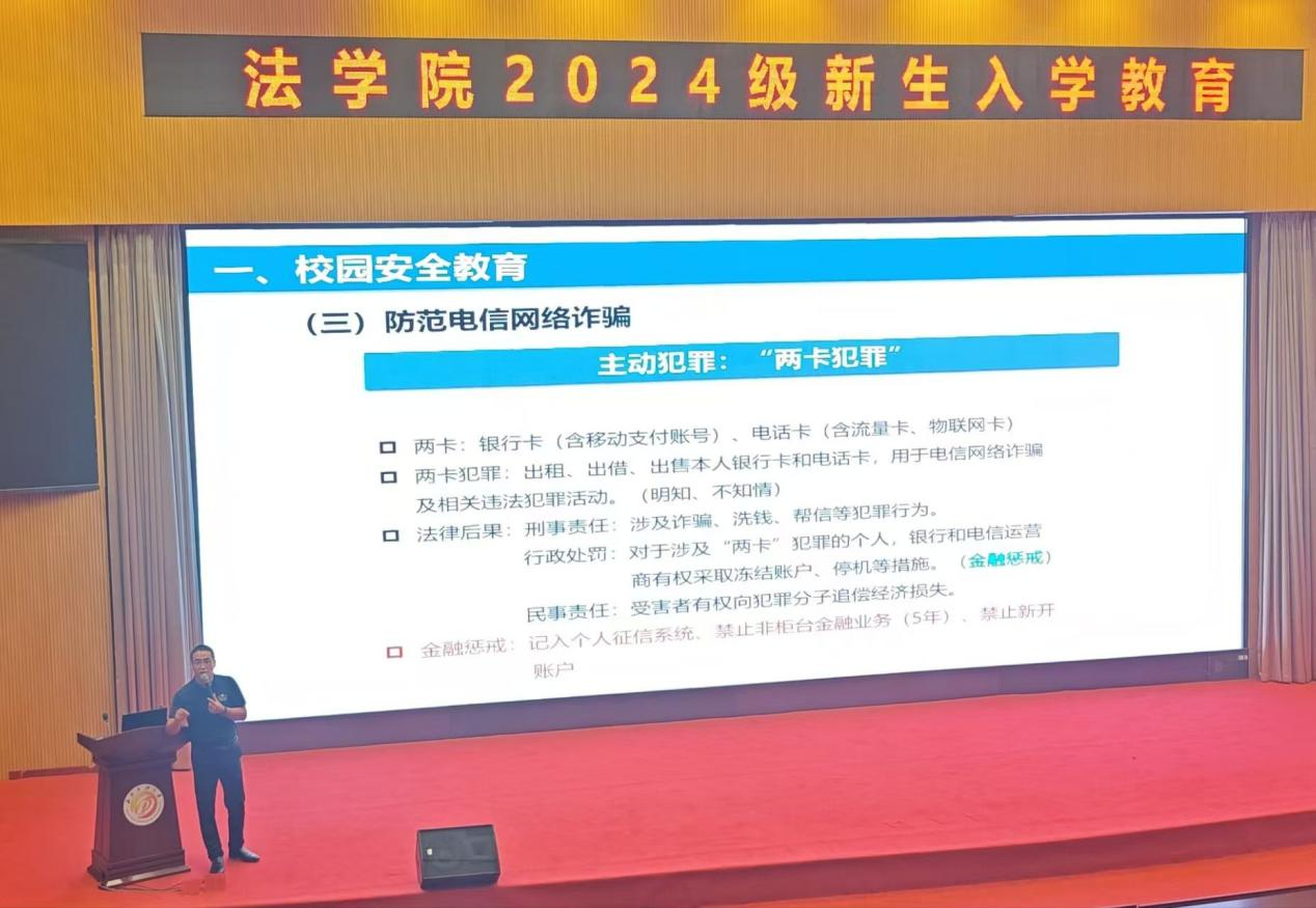 葛效鵬老師以“規范從你我做起,共建和諧平安校園”為主題,從校園的日常安全案例分析,從生活安全講到信息安全,內容涵蓋消防安全、治安安全、防范電信網絡詐騙等多個方面,為法學院新生入學安全生活打下“預防針”。