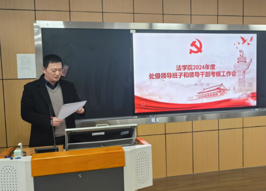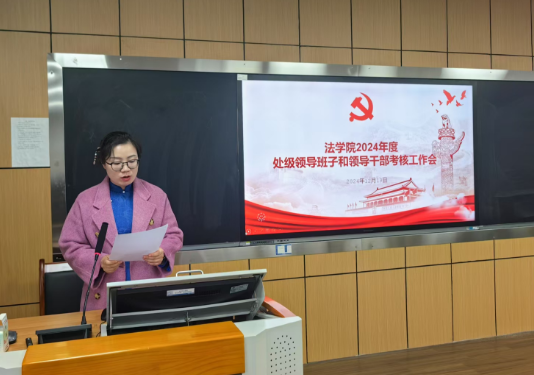 2024年12月19日下午4:30,2024年度處級領導班子和領導干部考核工作會在博學樓A408順利開展,法學院全體教師及7名學生代表共計64人參加本次述職會。本次會議由法學院工會主席孫小平主持。