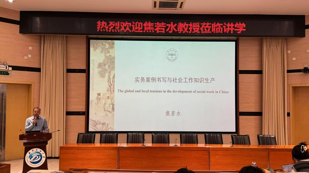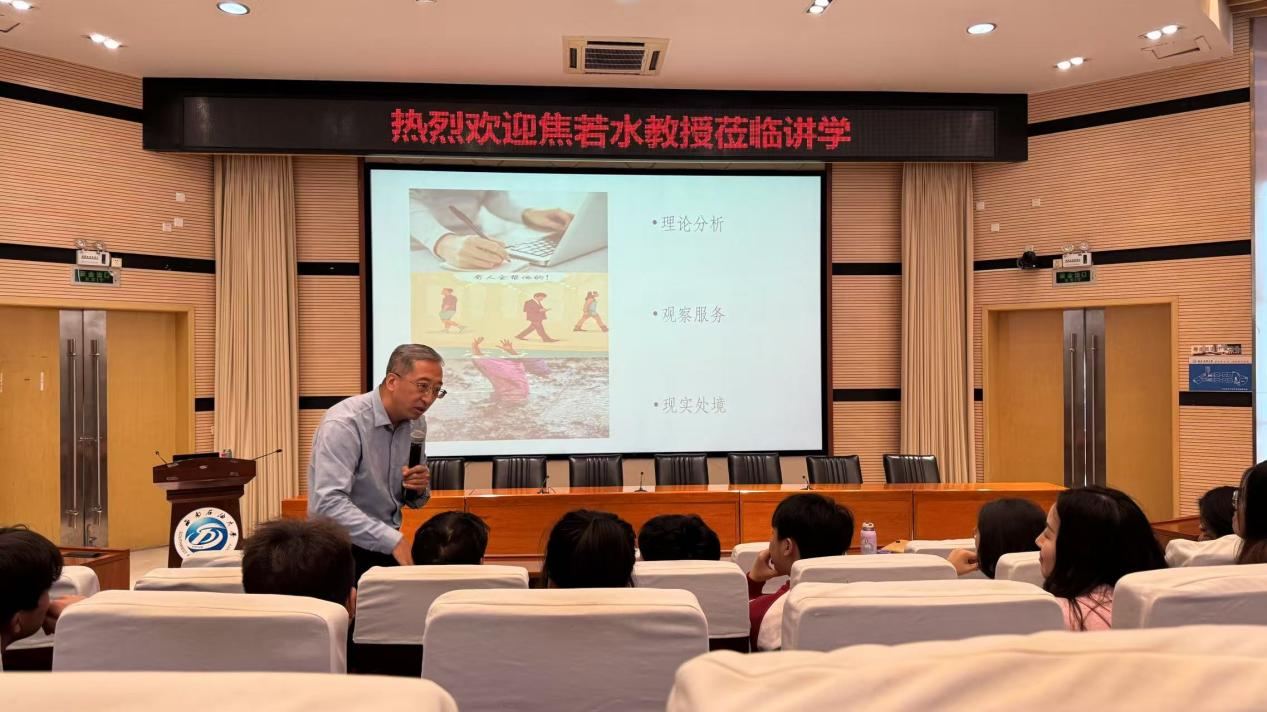 講座伊始,焦若水教授將西方社會工作的發展與中國儒家、道家思想進行對比,巧妙引出如何挖掘中國社會工作背后深層次邏輯和基礎架構這一關鍵問題。在講座過程中,焦教授從三個方面深入剖析。首先探討“用什么來拯救社會工作”,強調心理學對服務技術的支撐作用,指出“科學助人需要扎根于對人的深度理解”;接著從研究、職業、實踐三重面向審視社會工作,點明我國目前社會工作面臨的“向上不夠專業科學,向下不夠職業和實踐” 的現狀;最后闡述“從案例到研究:主體性、本土化、知識民主”,強調如何通過案例寫作將如認知行為理論、ABC理論等專業知識以實際案例呈現出來。
