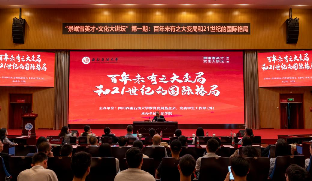 4月17日下午14時,由四川西南石油大學(xué)教育發(fā)展基金會、黨委學(xué)生工作部(處)主辦,法學(xué)院承辦的“景岷雪英才·文化大講壇”第一期在西南石油大學(xué)圖書館報告廳成功舉辦。本次講壇特邀中國人民大學(xué)“杰出學(xué)者A崗特聘教授”、國際關(guān)系學(xué)院外交學(xué)專業(yè)博士生導(dǎo)師金燦榮擔(dān)任嘉賓,為師生們帶來了一場關(guān)于“百年未有之大變局和21世紀(jì)的國際格局”的精彩講座。講壇由西南石油大學(xué)黨委常委、宣傳部部長張敏主持,校黨委常委、組織部部長易聯(lián)樹、校黨委常委、統(tǒng)戰(zhàn)部部長蒲勇等師生500余人現(xiàn)場參與,講座同步飛書直播。