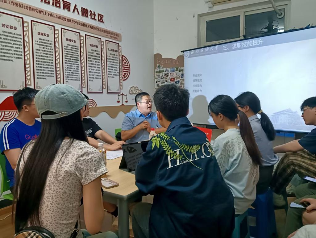 活動伊始,王浩副院長結合當前法學專業就業形勢,分析了考研考博、公務員考試、律所及企業法務的最新動態,結合自身經驗剖析現狀,并鼓勵同學們“既要仰望星空,也要腳踏實地”。法律職業道路多樣,關鍵在于找準自身定位,合理規劃安排目標和時間,才能事半功倍。無論是選擇公檢法系統、律師行業,還是企業合規領域,王浩老師認為都要以扎實的專業能力和持續的學習熱情積極應對挑戰,盡全力克服自身短板,培養自身專業優勢,才能在當今就業壓力巨大的環境中安定下來。同時王浩副院長也詳細解讀了現今基層就業政策、應屆生落戶政策及“先就業、再擇業”的實踐策略,提醒即將畢業的大學生們主動關注各地法律人才引進計劃,充分利用校招資源拓寬選擇,不論是否是本專業、在職與否,都有機會繼續深造學習,提升自我能力水平,增加未來發展道路。