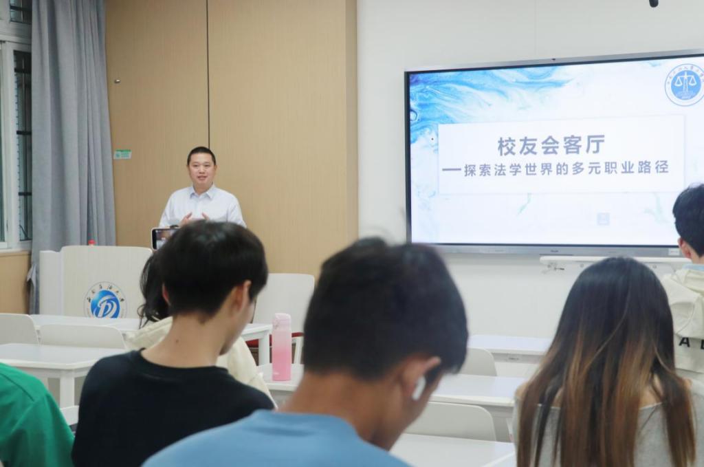 張洪劍校友以“探索法學世界的多元職業(yè)途徑”為主題,全面剖析了法學專業(yè)畢業(yè)生的職業(yè)發(fā)展路徑,重點解讀律師行業(yè)現狀與前景。他指出,當下法律職業(yè)市場呈多元化趨勢,建議學生盡早規(guī)劃職業(yè)路徑,明確未來方向,積極參與實習實踐,提升理論與實踐能力。