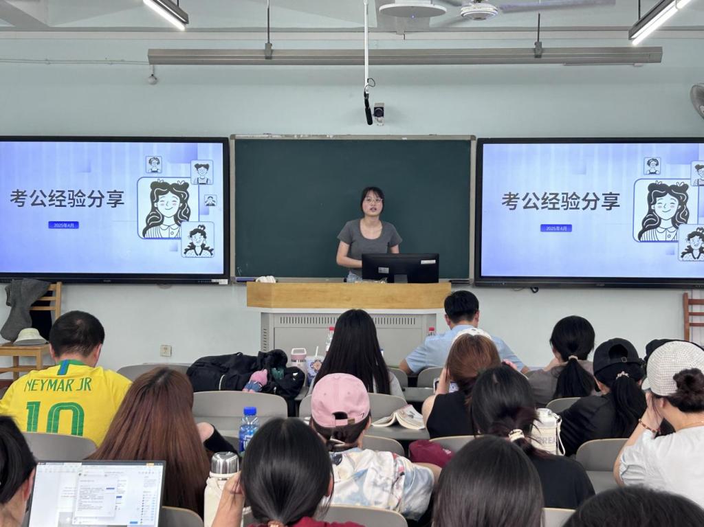 2025屆考研成功上岸的王一閔學姐作為深造代表,圍繞“選定學校、調整心態、備考方法”三大核心展開分享。2025屆考公成功上岸的張小杰學姐作為就業代表,從“崗位選擇、筆試突破、穩定心態”三方面傳授考公經驗。