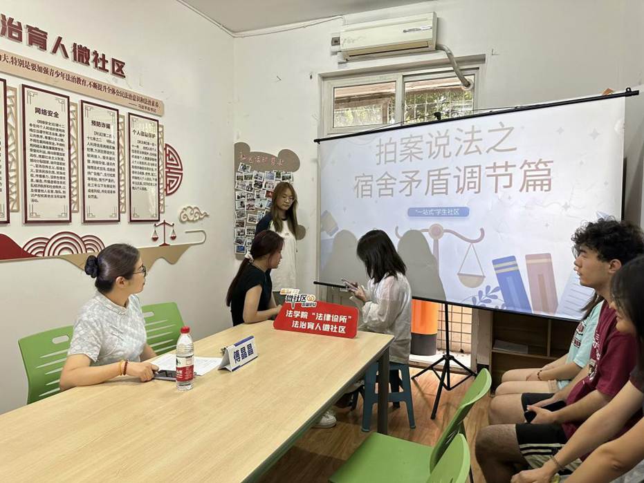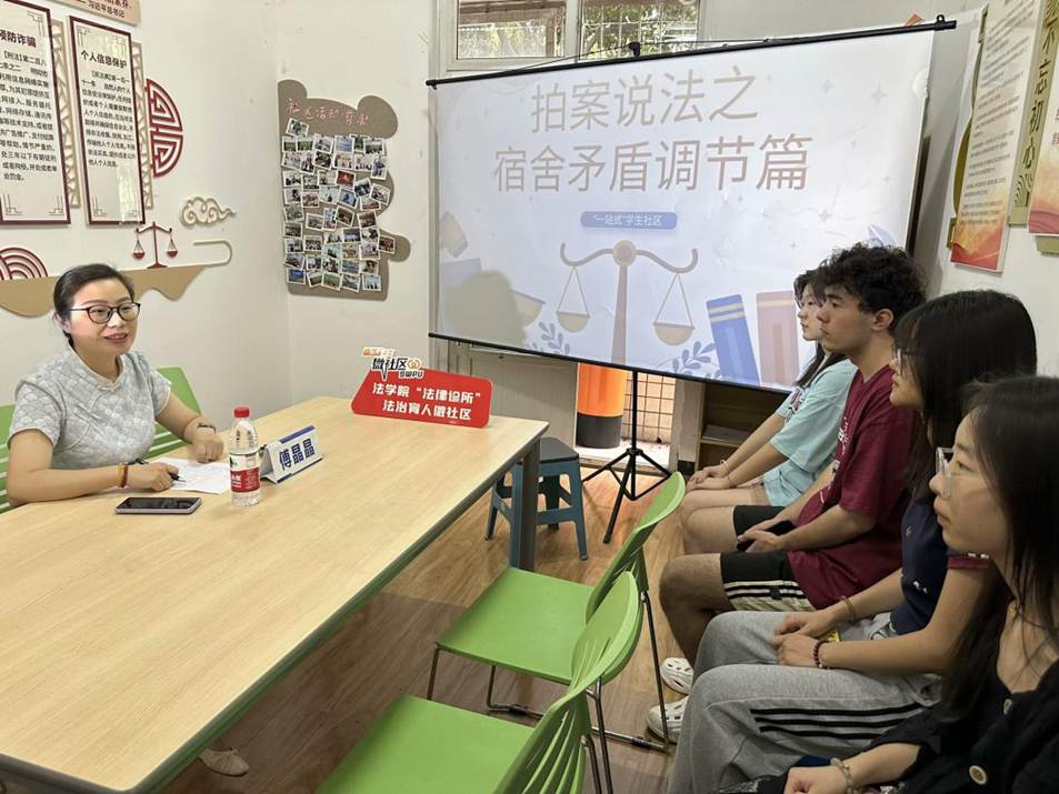 為提升學生的法律意識,引導學生在校園生活中正確處理健康與權益問題,法學院于2025年5月23日在弘毅居8棟125“一站式”社區開展了拍案說法之宿舍矛盾調解活動。本次活動由法律協會學生圍繞宿舍矛盾糾紛真實案例改編演繹情景劇,并特邀法學院院長傅晶晶老師為同學們提供相關的法律知識解讀。
