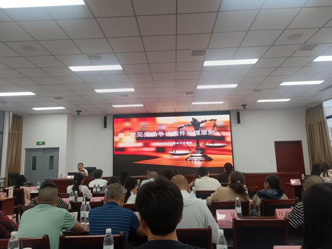 本次講座邀請了成都市勞動人事爭議仲裁院勞動關系庭庭長國富海,圍繞《勞動人事爭議調節仲裁相關法律法規解讀》開展專題培訓講座。國富海以真實司法案例為切入點,還原勞動爭議調解全過程,直觀展現法律工具在權益維護中的具體應用。