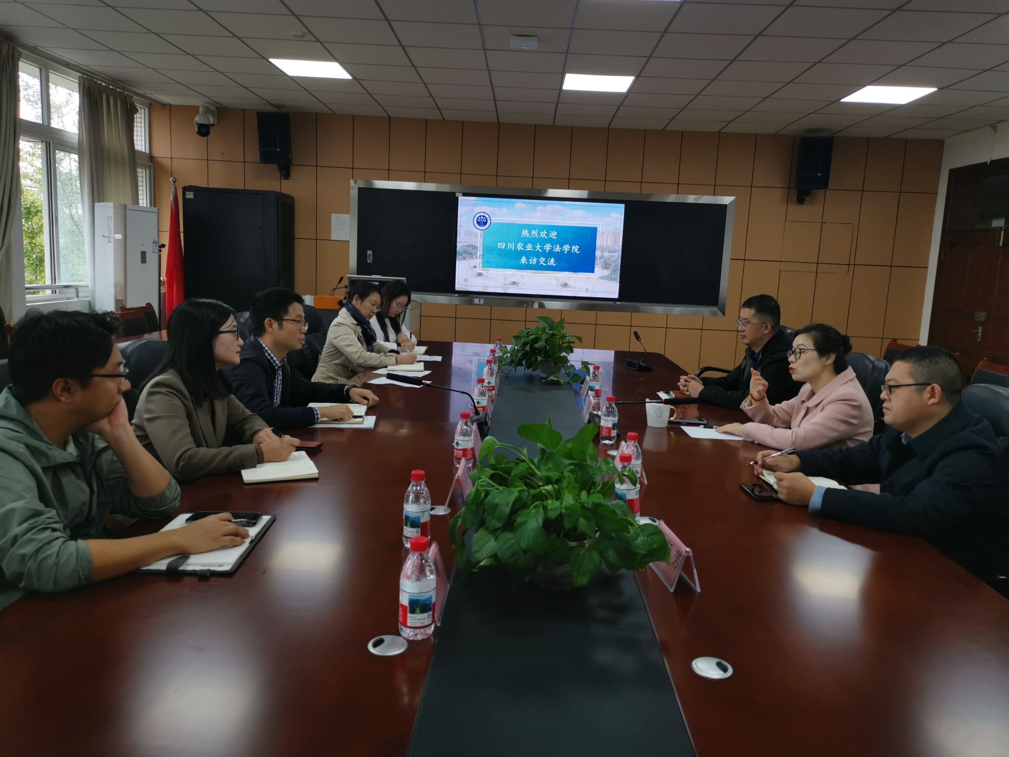 2025年10月27日,四川農業大學法學院黨委書記周海波,黨委副書記、紀委書記、副院長唐薇,副院長蘭婷,社會工作碩士點負責人陳焱,法學系副主任劉亦峰,社會工作專業教師羅秋宇,輔導員徐菁一行到訪我院。西南石油大學法學院黨委書記張華春、院長傅晶晶、副院長王浩,以及社會工作教研室主任夏延芳、社會工作碩士教育中心主任張江龍在博學樓A405會議室與來訪的四川農業大學法學院一行就學科專業建設和研究生培進行了友好交流。