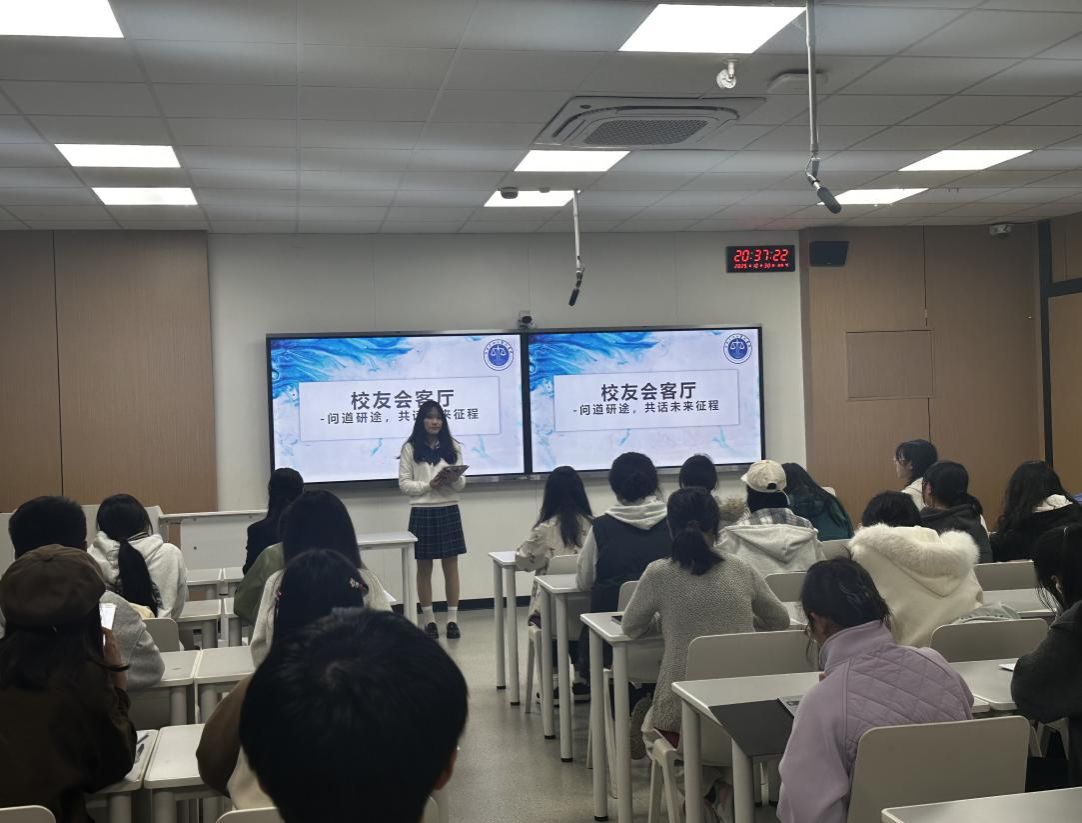 本次分享會以“問道研途,共話未來征程”為主題,呂瀅瀅不僅結合自身經歷,圍繞復習規劃、時間管理與心態調整展開交流,助力同學們明確目標、增強信心,也系統介紹了考研形勢與就業前景,幫助大家打破信息壁壘,明晰發展方向。