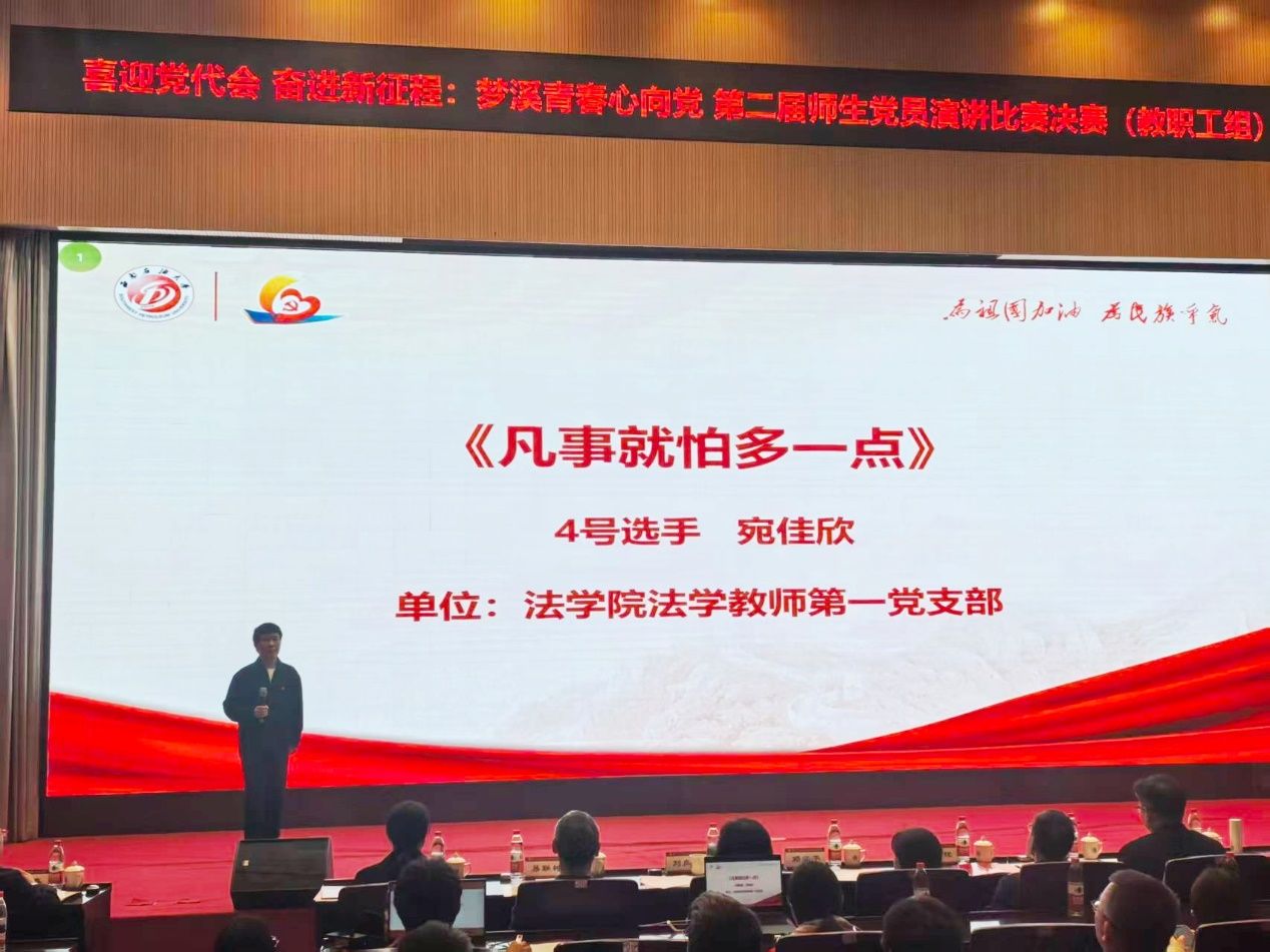 教職工組和學生組分別進行,分別由法學院黨委和化工院黨委承辦,決賽中18位教師和16組學生同臺競技,以鏗鏘之音抒發(fā)家國情懷,以赤子之心詮釋黨員擔當。經(jīng)過激烈角逐和評委的專業(yè)評審,最終我院教師宛佳欣獲得教職工組二等獎、法學2022級學生依力亞斯·買買提汗以第一名的得分獲學生組特等獎,法學院青年教師李歡擔任教職工組決賽主持人,現(xiàn)場表現(xiàn)優(yōu)異展現(xiàn)出良好素養(yǎng),法學院黨委獲優(yōu)秀組織獎。