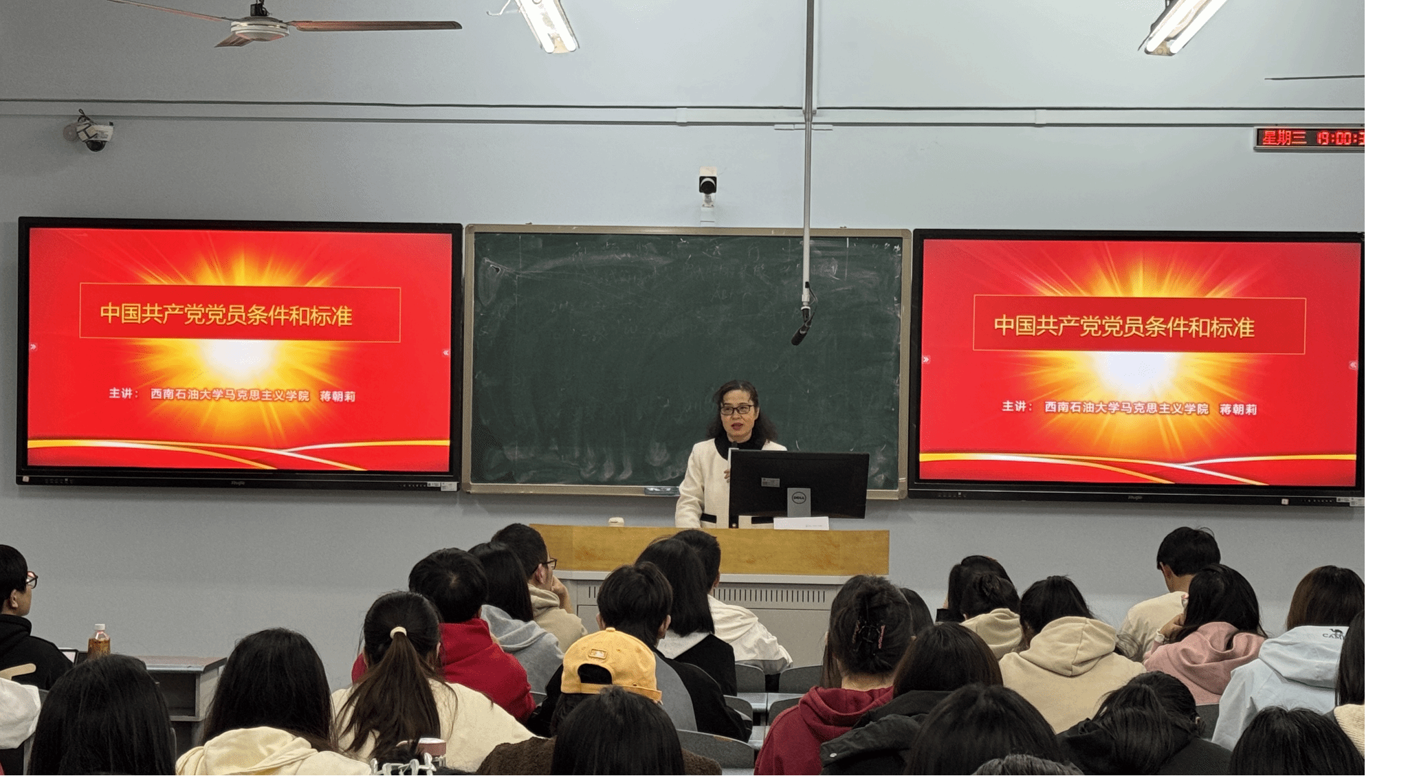 10月29日晚,法學院入黨積極分子培訓班在博學樓A202開展以《中國共產黨黨員條件和標準》為核心內容的專題授課,馬克思主義學院教授蔣朝莉老師主講。