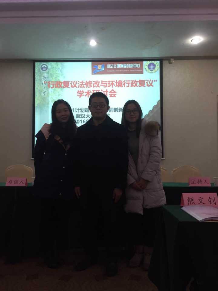 行政復議是環境行政糾紛解決的重要方式。為進一步推進我國行政復議制度的修改與完善,凝聚各方共識,國家司法文明協同創新中心于2016年12月17日在武漢大學豐頤酒店舉辦了2016“行政復議法修改與環境行政復議”研討會,來自全國各大知名院校的眾多專家學者、最高人民法院法官、湖北省政府法制辦專家齊聚一堂,參與會議討論。西南石油大學能源創新研究團隊骨干成員、法學院院長助理王浩博士,我院2015級研究生蔣麗、任靈應邀參加了會議。