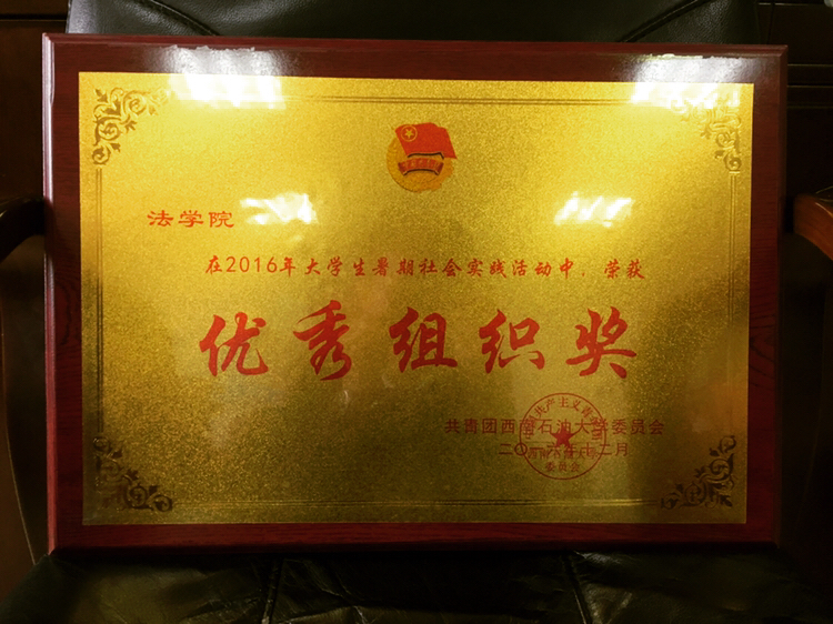 圖二 我院榮獲2016年大學生暑期社會實踐活動的優秀組織獎