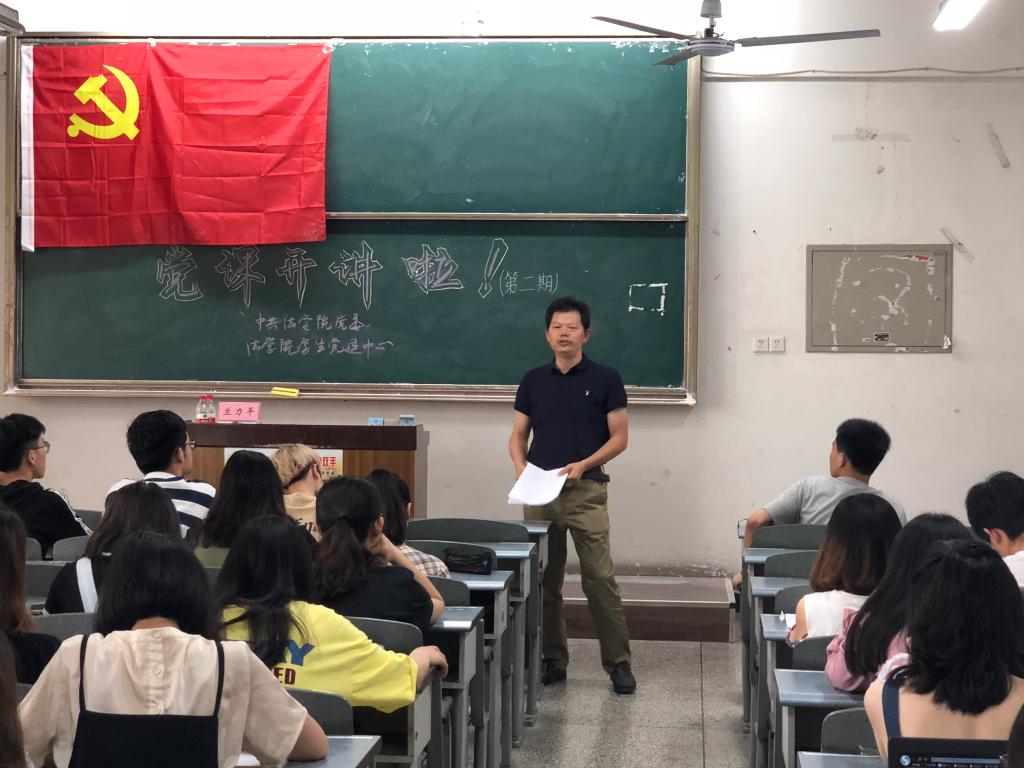 課上,蘭書記首先結合當前國內反腐形勢、中美貿易戰、朝鮮半島局勢等熱點問題指出了學習習近平新時代中國特色社會主義思想理論的重要性。他指出,政治與我們的生活息息相關,作為當代大學生,尤其是黨員學生,積極學習習近平新時代中國特色社會主義思想,關注國內外大事。