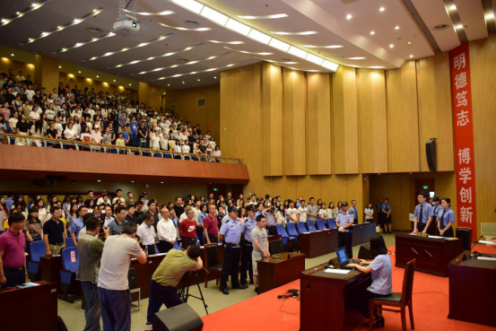 為普及預(yù)防毒品的知識(shí),加強(qiáng)我校學(xué)子對(duì)毒品危害的認(rèn)識(shí),進(jìn)一步提高學(xué)生抵御毒品的能力,增強(qiáng)自我保護(hù)意識(shí),營(yíng)造良好的校園環(huán)境,新都區(qū)檢察院、成都智青年法律服務(wù)中心聯(lián)合西南石油大學(xué)法學(xué)院、法律協(xié)會(huì)于2018年6月4日在我校圖書館學(xué)術(shù)報(bào)告廳舉辦了毒品案件庭審進(jìn)校園活動(dòng)。