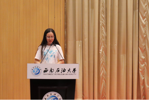 2018屆社會工作專業畢業生代表努爾古麗向同學們分享她獨自來到成都求學的成長故事。“心中有丘壑,立馬振山河”是她對自己的總結,她感慨道:“唯一讓她感到昂首挺胸的是你不斷努力的過往”,她始終堅信越努力,越幸運。