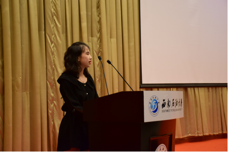 彭雨作為2018屆法學專業優秀畢業生代表以“想對開學第一天的自己說的話”、“大學四年最遺憾的事”、“收獲最大的事”、“想對大家說的話”四個問題為主線,結合多位優秀學長學姐的回答,強調自我價值認知與自我規劃的重要性。