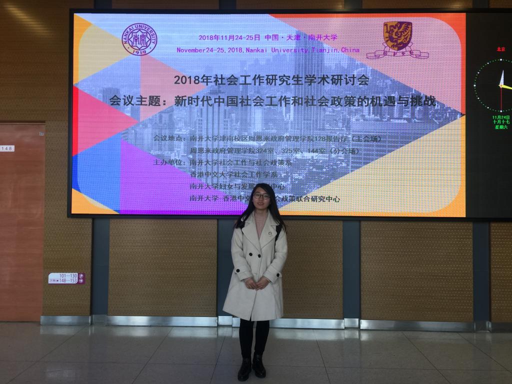 2018年11月24日至25日,主題為“新時代中國社會工作和社會政策的機遇與挑戰”的兩岸三地社會工作研究生學術研討會在天津南開大學舉行。我校法學院社會工作專業2018級研究生劉曉晴參加了此次研討會,并在“兒童與青少年議題”的分論壇作了題為《社工課堂在學校兒童性教育中的運用》的交流發言,得到了與會專家的認可。