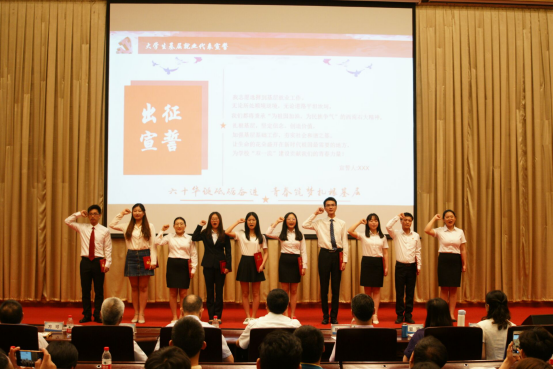 時代的責任賦予了青年,時代的光榮也屬于青年。郭建春校長為即將奔赴基層的各位優(yōu)秀代表頒發(fā)榮譽證書,并對他們寄予厚望,希望他們始終心系百姓,扎根基層,綻放青春。隨后,大學生基層就業(yè)代表集體宣誓,堅定的話語代表著他們與時代同心同向的理想信念,以及為祖國基層建設(shè)揮灑熱血的決心。