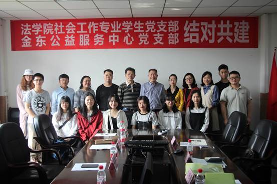青春向家國,建功新時代。為提升黨支部組織力,充分發揮黨支部戰斗堡壘作用,促進支部合作共創,5月12日,法學院社會工作學生黨支部與金東公益服務中心黨支部聯合開展共建共話活動。校黨委統戰部部長張昌元、院黨委書記蘭力平、院黨委副書記于百江、校地合作辦公室主任杜鵬、社會工作專業教研室章曉、社會工作學生黨支部書記肖丹、金東公益服務中心副總劉艷春、金東公益服務中心黨支部書記古茜以及社工黨支部學生黨員代表出席本次活動。